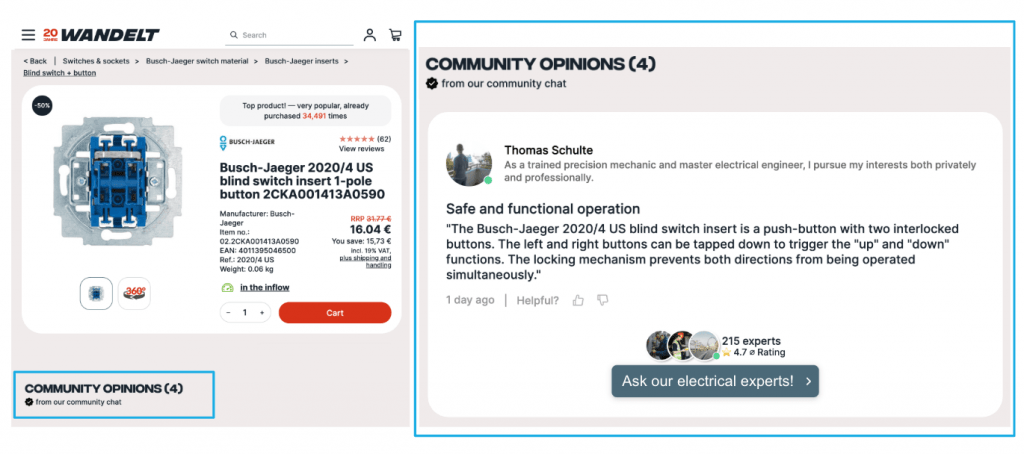 Example of GUURUs UGC Solution (Community Content) used by Elektro Wandelt