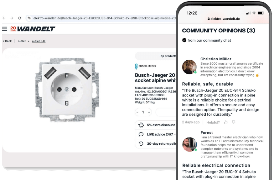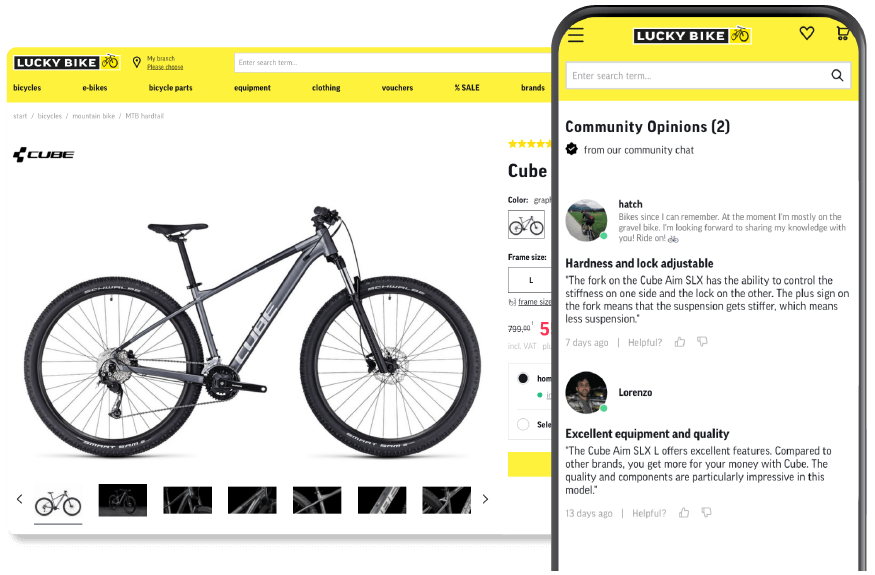 Community Content seamlessly brings trusted product opinions from real customer conversations straight onto your product pages. Powered by AI, it automatically identifies valuable content every day and keeps your pages relevant and engaging.