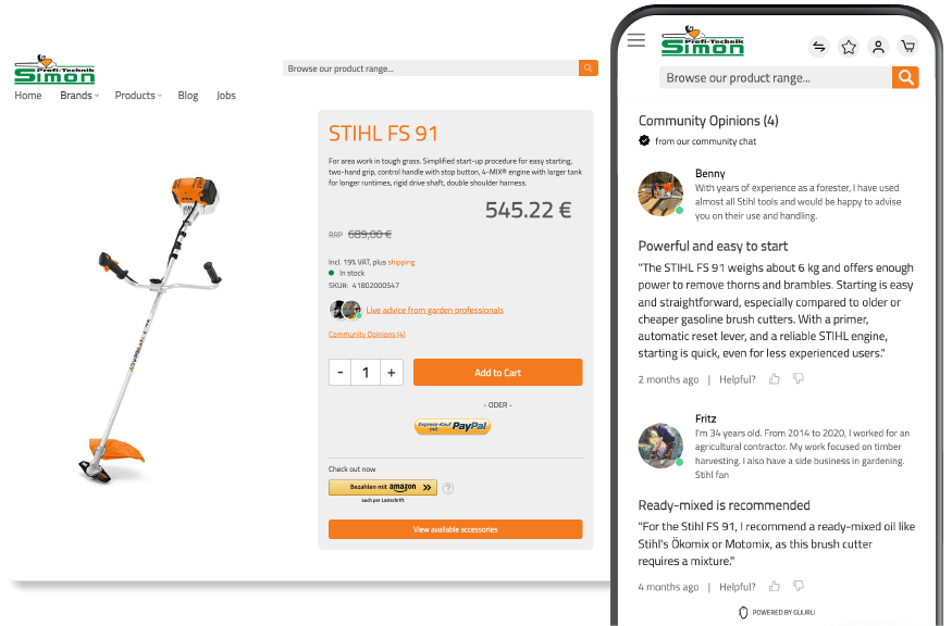 Your most knowledgeable and experienced users already know how to guide others. GUURU helps you find and foster this community, then turns their advice into authentic, high-trust content. The result? Content indexed by search, discoverable by AI, and embedded right where buying decisions happen.