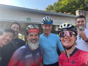 Der Samstag startete sportlich und entspannt zugleich: Nach der Ankunft am Mittag ging es direkt auf den Warm-up Ride (Dillier Classics) mit Silvan Dillier, der die Gruppe durch seine Heimatregion führte – auf Strecken, die er selbst wie seine Trikottasche kennt. Wer’s etwas ruhiger angehen wollte, konnte sich entspannt aufs Olympia-Rennen der Herren konzentrieren, das wir gemeinsam auf der Grossleinwand verfolgten. Der Tag endete bei einem gemütlichen Abendessen mit Wein-Testing und vielen ersten Gesprächen, die klar machten: Diese Community hat Power – auf dem Rad und im Business.