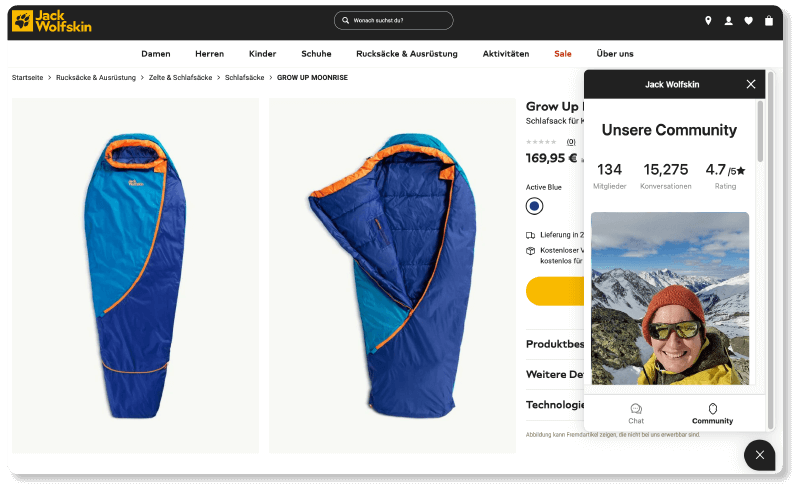 Unsere Community Advice Solution ist mehr als nur Live-Chat-Beratung! Wir verbinden Rat suchende Online-Shopper mit leidenschaftlichen Markenfans aus deiner treuen Kunden-Community, die deine Produkte kennen und lieben. Echter Austausch, der Vertrauen und emotionale Markenbindung fördert.