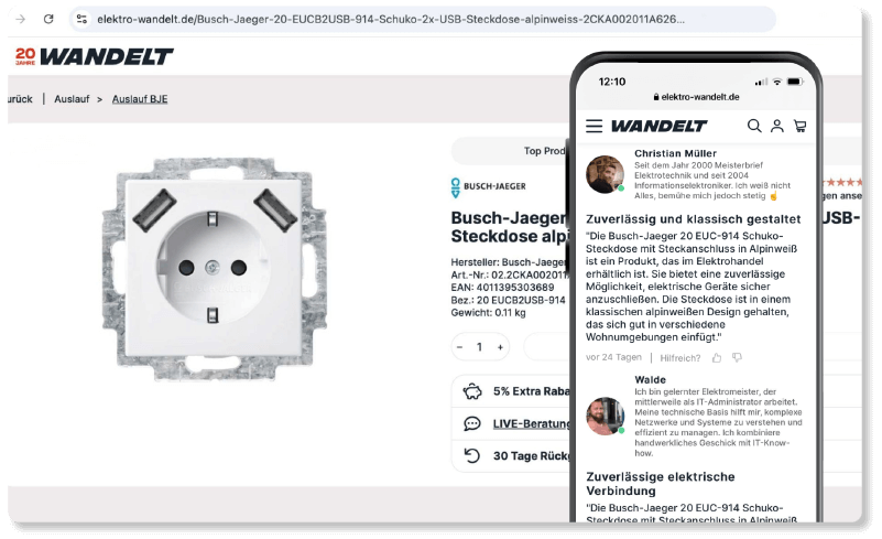 Gib deinen Shoppern Echtzeit-Zugang zu glaubwürdigen Stimmen genau dort, wo es am meisten zählt: auf deiner digitalen Präsenz.