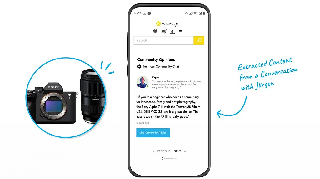 Looking ahead, Jutta speaks about GUURU’s latest service. Community Content. This feature automatically extracts the most valuable advice from real-time customer conversations, pulling it into relevant product pages for an effortless stream of recent and trusted community opinions.